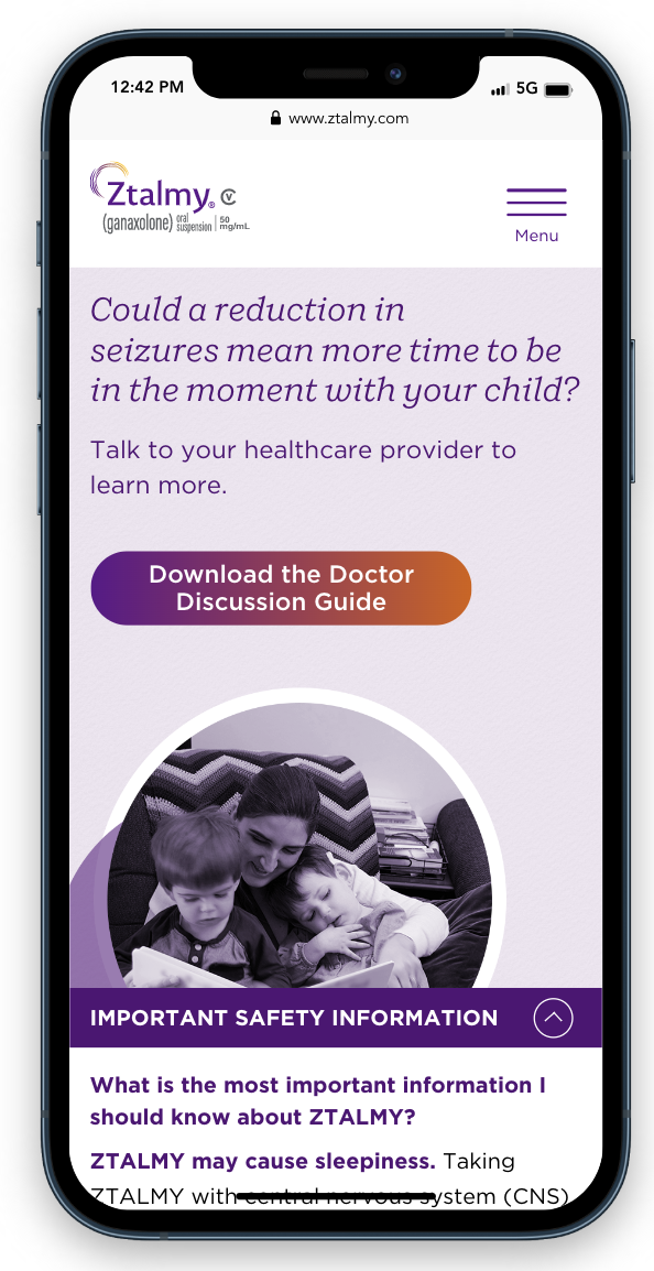 Designed comprehensive health care provider and patient facing websites that educates visitors on adequate seizure control with the FDA approved treatment, ZTALMY.